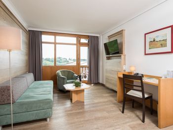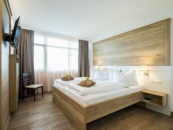 Gemütliche Einzelzimmer sowie großzügige Zwei-Raum-Doppelzimmer und Junior Suiten stehen zur Verfügung. Alle Zimmer sind mit Dusche/WC, Sat-TV, Telefon, WLAN, Kühlschrank bzw. Minibar und Balkon oder Terrasse ausgestattet.