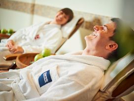 Die Sauna und das Dampfbad der Unterkunft sind auf Anfrage zwischen 16:00 und 22:00 Uhr auf Anfrage bis 15 Uhr am selben Tag geöffnet. Ein moderner Fitnessraum ist ebenfalls vorhanden. Weiterhin gibt es im Hotelgebäude eine 3D-Minigolfanlage (gebührenpflichtig).