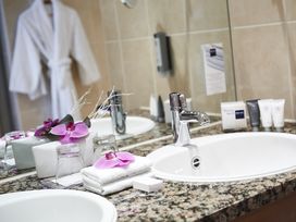 Die modernen, geräumigen Zimmer im Dorint Hotel am Dom Erfurt sind mit edlen Stoffen eingerichtet und verfügen über eine sanfte Beleuchtung. Alle Zimmer sind klimatisiert und bieten Sat-TV. Jedes Bad ist mit einer Badewanne oder einer Dusche sowie einem Haartrockner und einem Kosmetikspiegel ausgestattet.