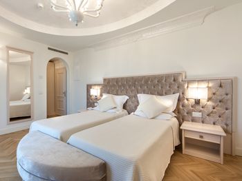 Für angenehmes Raumklima in den Zimmern sorgen eine Klimaanlage und eine individuell steuerbare Heizung. Die Zimmer verfügen über ein bequemes Bett. Kinderbetten für die jüngsten Gäste sind ebenso vorhanden. Außerdem sind ein Safe, eine Minibar und ein Schreibtisch verfügbar. Besten Urlaubskomfort bieten ein Telefon mit Direktwahl, ein TV-Gerät mit Satelliten-/Kabelempfang, ein Radio und WiFi (ohne Gebühr). Die Badezimmer sind ausgestattet mit einer Dusche oder einer Badewanne und einem Bidet. Als weitere Annehmlichkeit gibt es einen Haartrockner. Für besonderen Komfort in den Badezimmern sorgen Kosmetikartikel. Buchbar sind rollstuhlgerechte Zimmer. Für Eltern mit Kindern stehen Familienzimmer zur Verfügung.