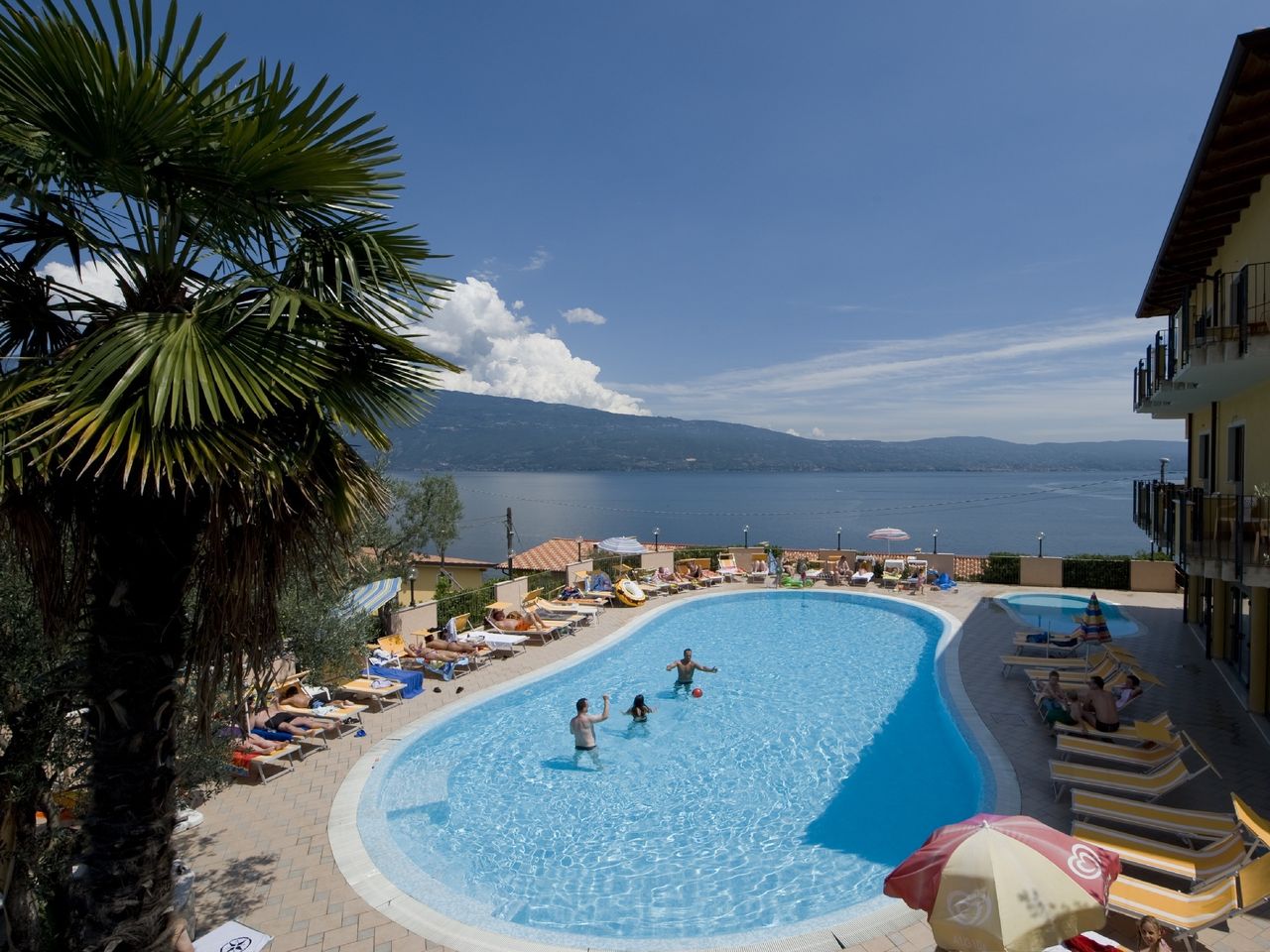 Die drei großen Außenpools mit Blick auf den See werden von Kindern und Erwachsenen sehr geschätzt, ausgestattet mit Liegestühlen und Sonnenschirmen, um an heißen Sommertagen die Sonne und ein erfrischendes Bad genießen zu können