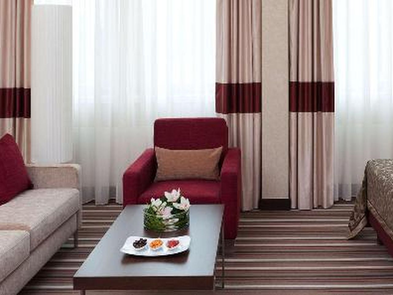 Für angenehmes Raumklima in den Zimmern sorgen eine Klimaanlage und eine individuell steuerbare Heizung. Zusätzlichen Komfort in den meisten Zimmern bietet eine Terrasse, die zum Entspannen einlädt. Die mit Teppichböden ausgestatteten Zimmer verfügen über ein Doppelbett oder ein Kingsize-Bett. Auch Baby- und Zustellbetten können zur Verfügung gestellt werden. Außerdem sind ein Safe, eine Minibar und ein Schreibtisch verfügbar. Auch ein eine Tee-/Kaffeemaschine ist vorhanden. Ein Bügelset ist für den zusätzlichen Komfort der Gäste verfügbar. Darüber hinaus sind ein Telefon mit Direktwahl, ein TV-Gerät mit Satelliten-/Kabelempfang, ein Radio, eine Stereoanlage und WiFi (ohne Gebühr) vorhanden. Zudem können die Gäste den Gute-Nacht-Service in Anspruch nehmen. Zu den Vorzügen der Zimmer gehören Hausschuhe und die Tageszeitung. Die Badezimmer sind ausgestattet mit einer Dusche oder einer Badewanne. Ein Haartrockner, ein Kosmetikspiegel und Bademäntel stehen für den Gebrauch zur Verfügung. Für besonderen Komfort in den Badezimmern sorgen Kosmetikartikel. Außerdem sind rollstuhlgerechte Zimmer mit barrierefreiem Badezimmer buchbar.